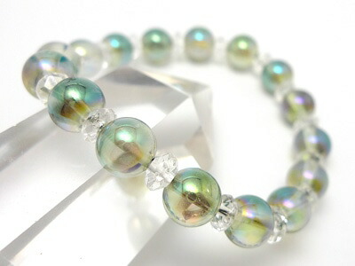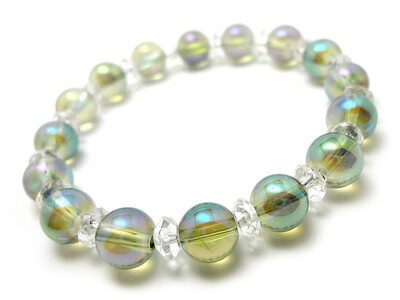 グリーン オーラ水晶 ブレスレット パワーストーン ブレスレット レディース メンズ 天然石 数珠 アクセサリー メンズブレスレット レディースブレスレット パワーストーンブレスレット 天然石ブレスレット 男性用 女性用 緑色