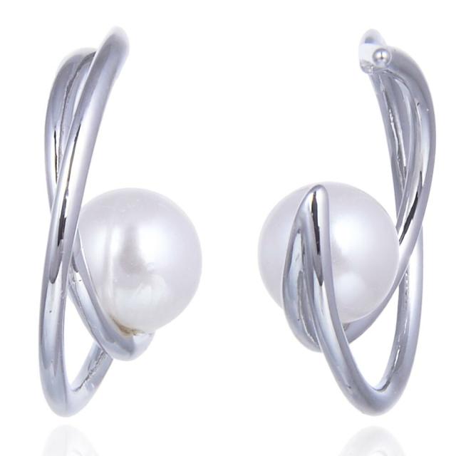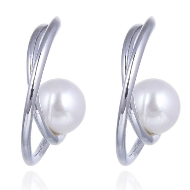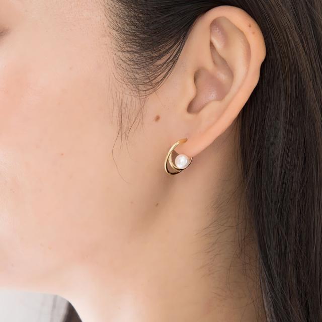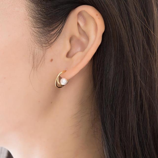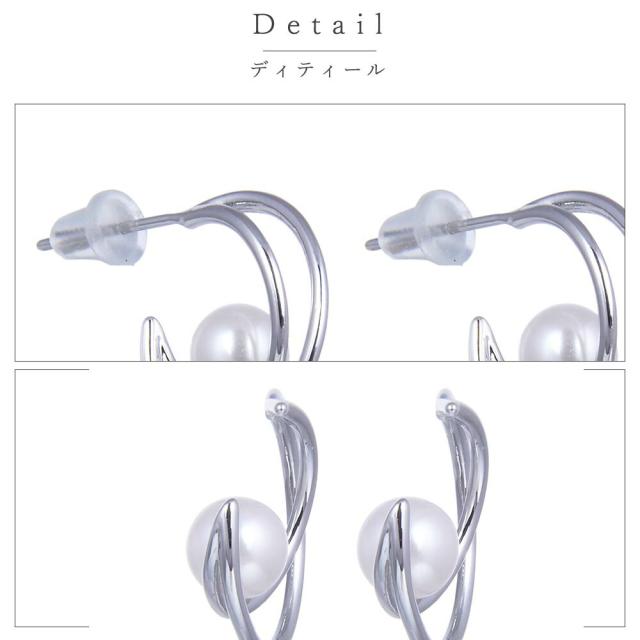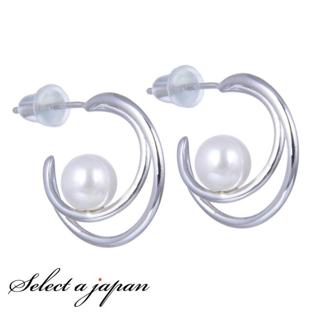 ピアス レディース ダブルハーフサークル パール付 シルバー ジュエリー アクセサリー シンプル カジュアル 大人 ワンポイント 女性用 上品 ゴージャス エレガント プレゼント ギフト