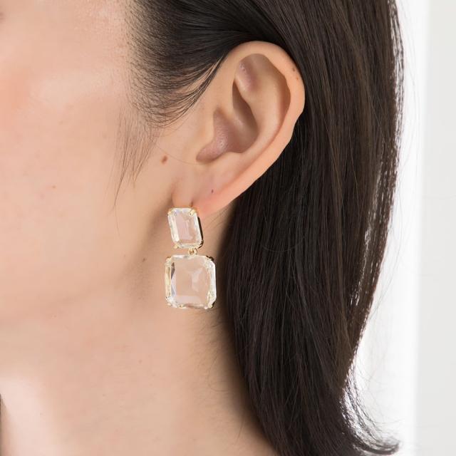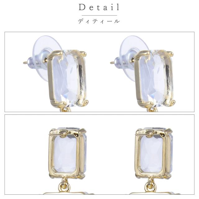 ピアス レディース 二連 ビジュー 透明 ジュエリー アクセサリー シンプル カジュアル 大人 ワンポイント 女性用 上品 ゴージャス エレガント プレゼント ギフト
