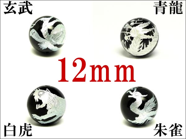 玄武、青龍、朱雀、白虎 彫刻オニキス 12mm玉