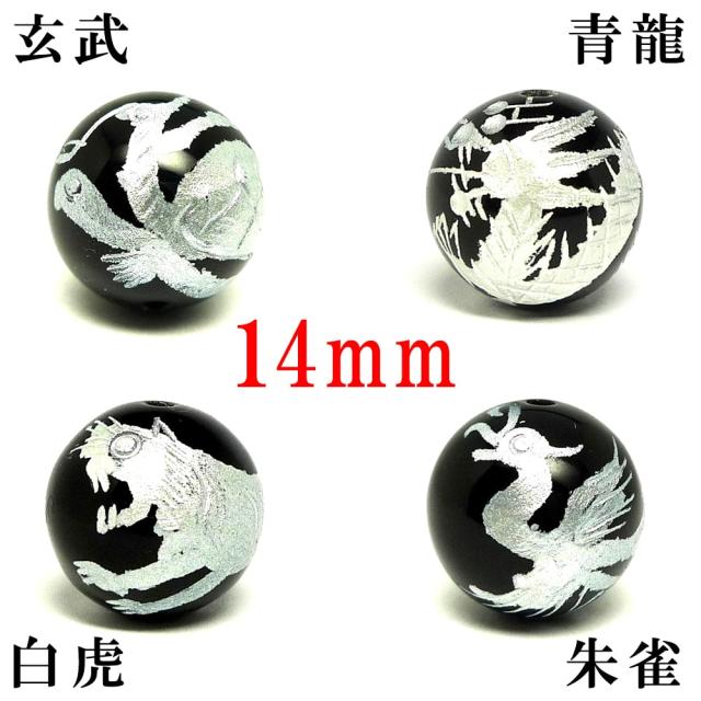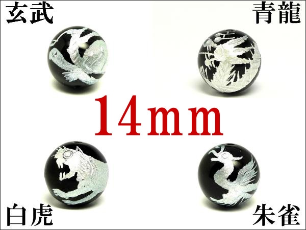 玄武、青龍、朱雀、白虎 彫刻オニキス 14mm玉