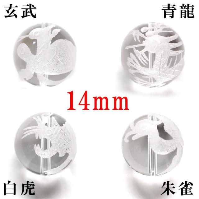 玄武、青龍、朱雀、白虎 彫刻水晶 14mm玉