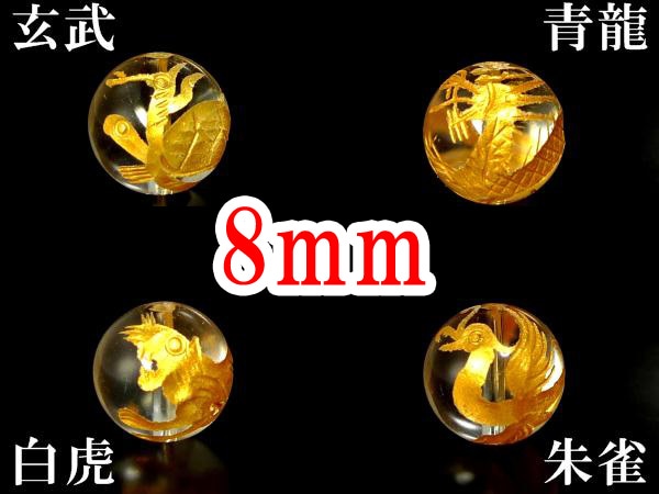 玄武、青龍、朱雀、白虎 彫刻水晶 8mm玉