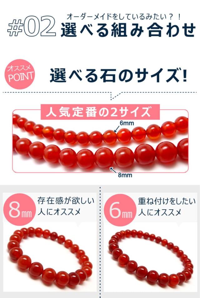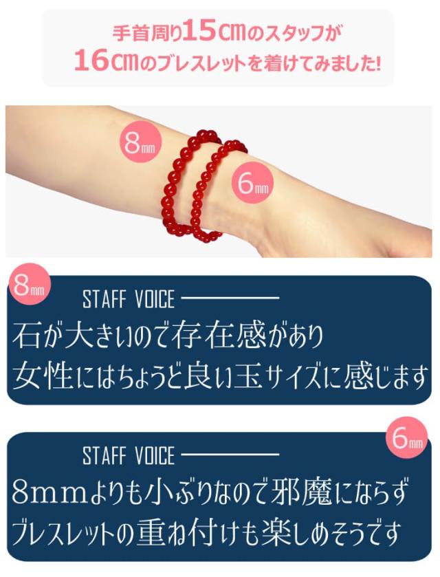 ・ ブレスレットの玉サイズは8mm玉、6mm玉をご用意しておりますので、お好みの玉サイズのブレスレットをお選びください