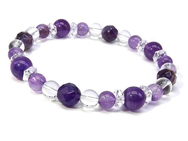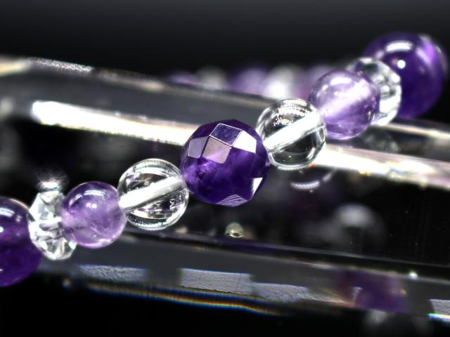 アメジスト アメジストは『真実の愛』を守りぬく愛の聖石と呼ばれる天然石です。2月の誕生石としても人気のパワーストーンで、愛と慈しみの心を象徴し、真実の出会い・素敵な恋人を招き寄せる力を持つといわれていますので、「大切な方へのプレゼント」にもお勧めです。 また、心に平穏をもたらし、安らぎと癒し・愛情をもたらしてくれるともいわれているため、家庭のお守りとしても人気のパワーストーンです。大切な方との絆を深める石でもあるので、愛する人がいる方やその人との絆をさらに深めたいと願う方にお勧めの天然石です。アメジストは優れた浄化作用も持っていますので、身に付けたり部屋に置いたりすることで、場や心身を清め、邪気を払い心を健康にしてくれるでしょう。