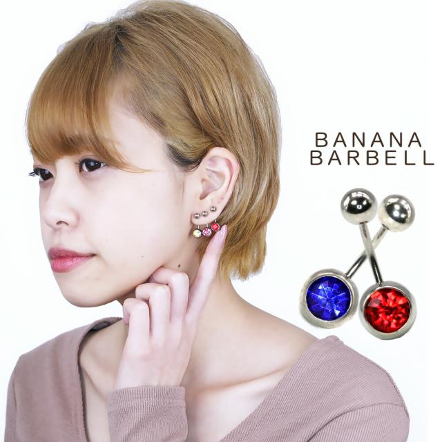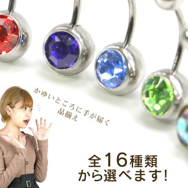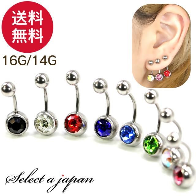 ボディピアス 16G 14G バナナバーベル カーブバーベル 覆輪 ストーン 1個付 軟骨 ピアス ボディピ サージカルステンレス 16ゲージ 14ゲージ つけっぱなし トラガス 軟骨ピアス ボディーピアス 耳たぶ 舌ピ へそピアス インダストリアル ファーストピアス セカンドピアス ボデ