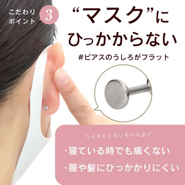 ピアスの裏側がフラットなラブレットタイプのためつけっぱなしでも引っかかりにくいです。