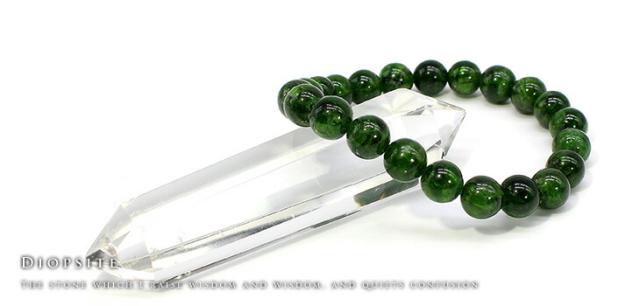 自らに誇りを持ち、相手には尊敬の念を抱くなど精神的成長を促がしてくれるそうです。仕事でストレスを抱えやすい人や、対人関係に疲れた人におすすめの天然石です。クロムダイオプサイドには持ち主の知恵と叡智を高めてくれるエネルギーがあります。優れたカリスマ性を与え、日々の生活に疲れたあなたに明日への『活力』をもたらすパワーストーンです。
