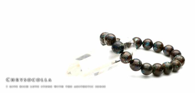 満たされない思いやストレスにもおすすめの石です。またクリソコラは、イマジネーションを引き出し美意識を高めるとされ、洗練されたアイディアや創造力をもたらすとされる石でもあります。また、豊かさや幸運を呼び込むとされる「金の石」としても有名なので、経営者や役職に就く方のサポートするといわれるパワーストーンです。