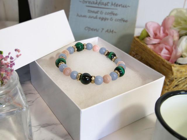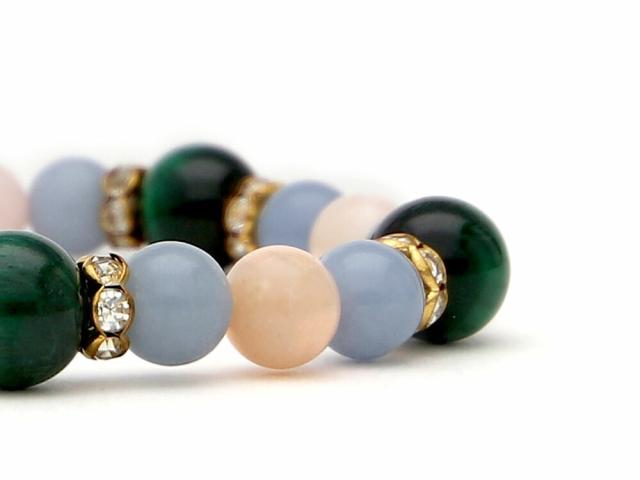 エンジェライトはとても優しいエネルギーを持ち、人生における大切なものに気づかせ、それらのものに対して広く愛の心を持つように導くパワーストーンと言われます。さらに「祈り」の石として深い愛を遠くまで伝える効果があるとされ、世界平和から恋愛まで深い愛をもたらす「博愛と平和の石」としても愛されています。