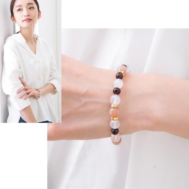 ムーンストーンは、女性らしい魅力を豊かに表現させ、愛する人との絆を深めてくれるといわれています。女性らしさが足りないと感じるとき、このパワーストーンが母性を思い出させてくれるでしょう。この石には、満ち欠けする月のように変化する感情をコントロールする作用があるといわれています。感情の浮き沈みが激しく、ネガティブな思考におちいりやすい人はいつも身につけることで、情緒が安定するでしょう。イライラが原因のトラブルを回避してくれるので、ストレスを感じるときにもおすすめです。感性や直感力を高めるとされるムーンストーンは、自分の進むべき道に迷っている人の、よい導き手になってくれるでしょう。