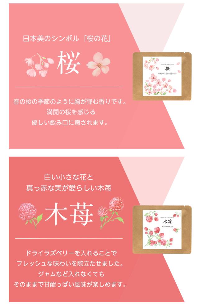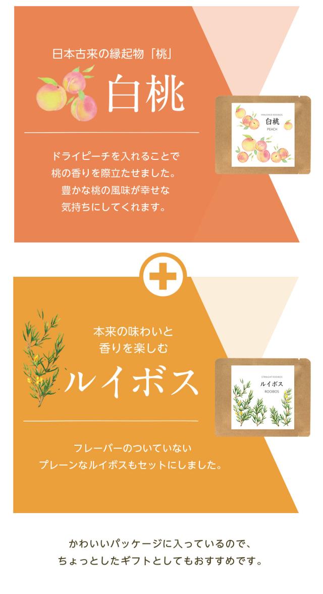 【内容量】[洋梨]3g×1包・[桜]3g×1包・[木苺]3g×1包・[白桃]3g×1包・[ルイボス]2g×1包 計5包