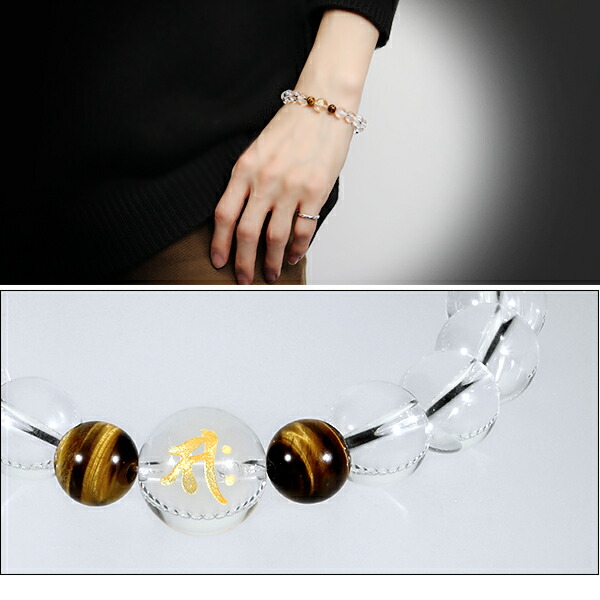 梵字 十二支 守護 ブレスレット 水晶 タイガーアイ 12mm 17.5〜19.5cm M〜LL サイズ