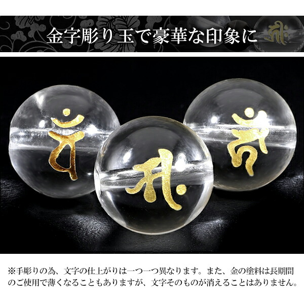自分の干支をお選びいただける、梵字(ぼんじ)の彫り水晶を用いた天然石ブレスレットです。