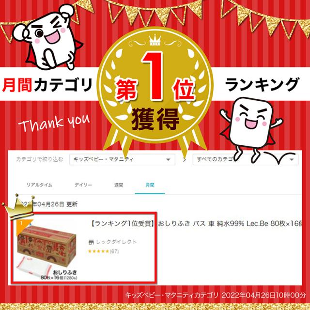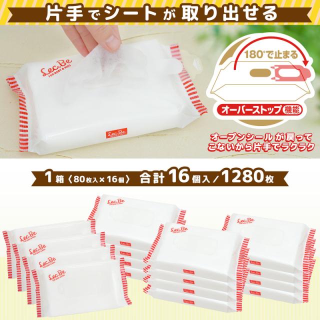 【ランキング1位受賞】おしりふき バス バスデザイン 車 純水99% Lec.Be 80枚×16個 計1280枚 日本製 コスパ レック 出産祝い 無添加処方 送料無料