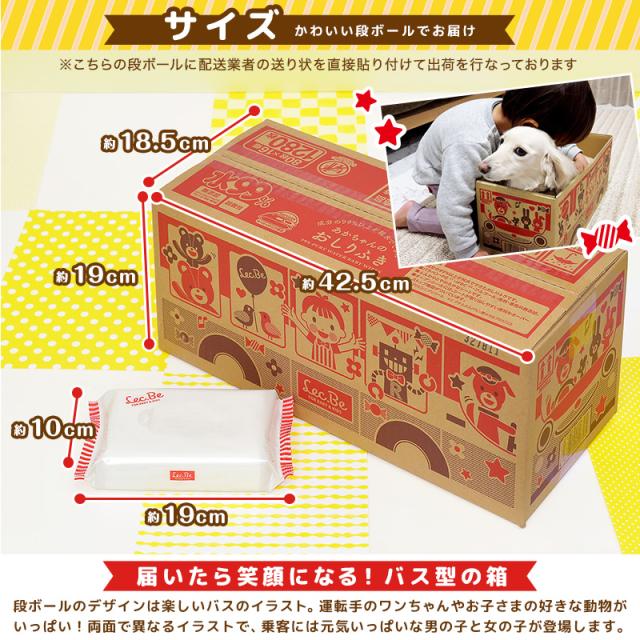 届いたら笑顔になるバス型の箱に入っておしりふきが届きます