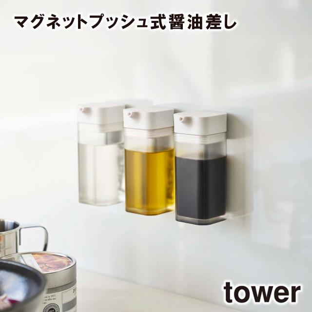 【tower】マグネット プッシュ式 醤油差し 4815 4816 \ 対象同梱で送料込み /【容器 収納 調味料 醤油 ラー油 しょうゆ ケース ボックス 収納 収納道具 山崎実業】