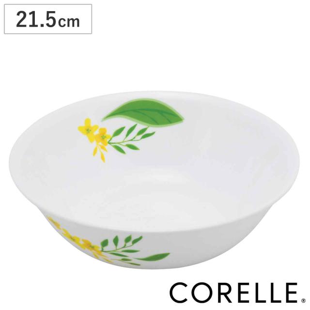 ボウル 21.5cm CORELLE ノーブルイエロー 強化ガラス ( コレール 食洗機対応 電子レンジ対応 オーブン対応 耐熱 皿 大鉢 盛り皿 食器 お皿 深皿 丸 パスタ皿 カレー皿 パスタボウル 洋食器 花 柄 割れにくい 白 )