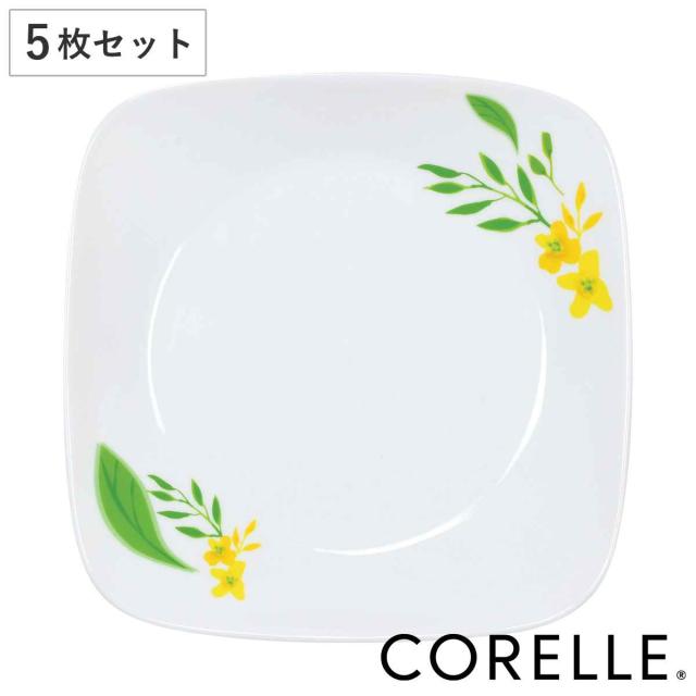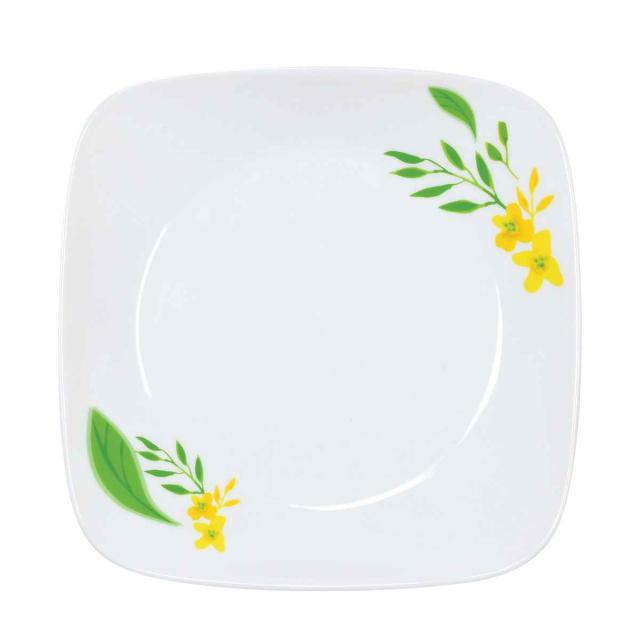 プレート 22.5cm スクエア CORELLE ノーブルイエロー 強化ガラス ( コレール 食洗機対応 電子レンジ対応 オーブン対応 耐熱 皿 平皿 中皿 盛り皿 お皿 ワンプレート 角型 洋食器 花 割れにくい 白 )