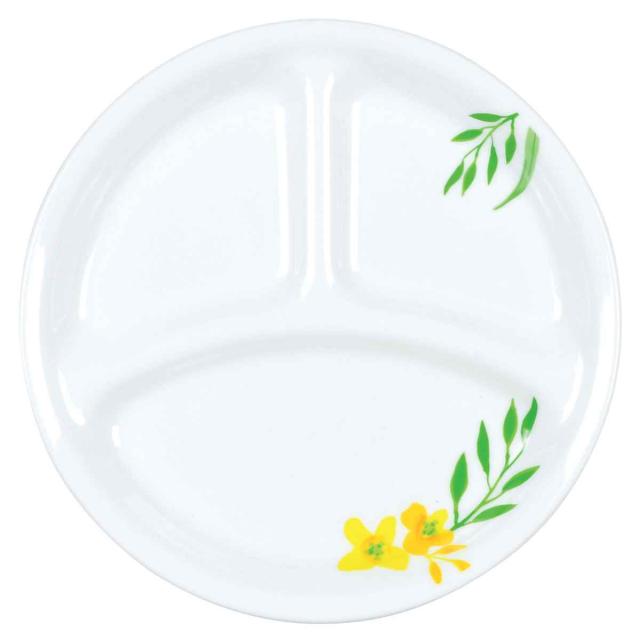 ランチプレート 21.5cm CORELLE ノーブルイエロー 強化ガラス 5枚セット ( コレール 食洗機対応 オーブン対応 耐熱 皿 平皿 丸皿 仕切り皿 お皿 ランチ ワンプレート 洋食器 花 割れにくい 白 5枚 )