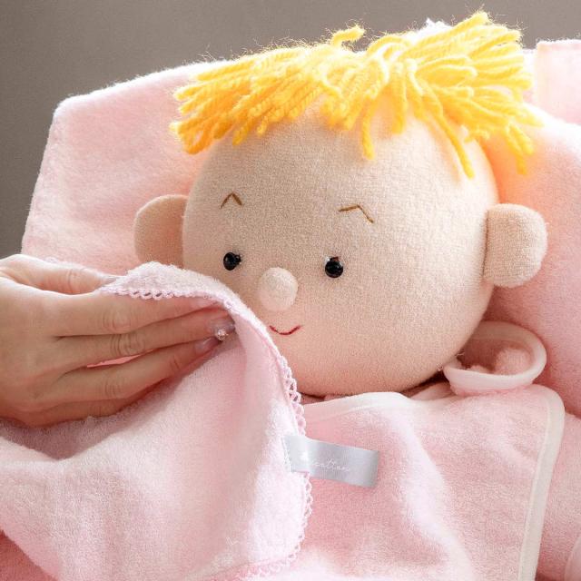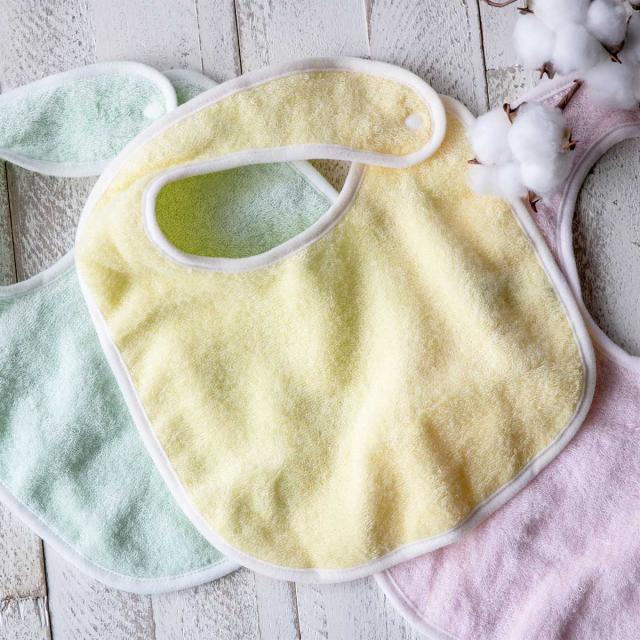 通常のタオルに使用される糸の約半分の細さの高品質な極細綿糸を使用しており、とても軽くて、きめ細かいパイルです。通常のタオルの約半分の重さで、たっぷりのボリューム感を実現。大切な赤ちゃんの肌を優しく包み込んでくれます。