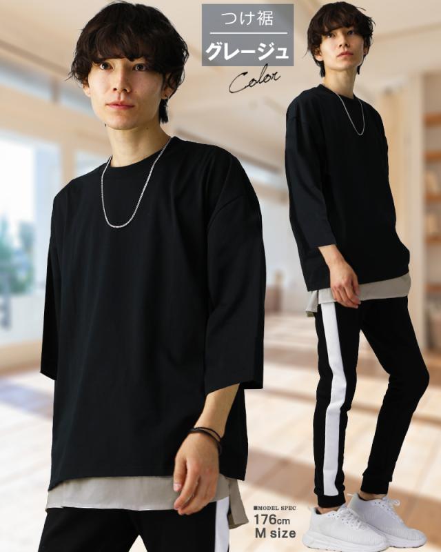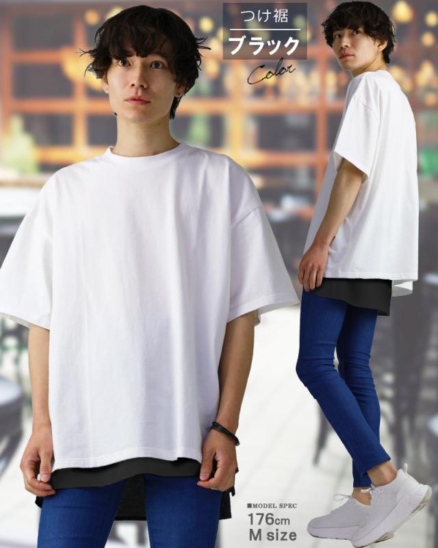 履くだけ カンタン 重ね着 付け裾 腹巻 レイヤード メンズ フェイクレイヤード 体型カバー トップス つけ裾 体型カバー 重ね着風 可愛い 裾 裾出し 腰巻 ロング ロング丈 サイドスリット 大きいサイズ d男性用 f610-f625