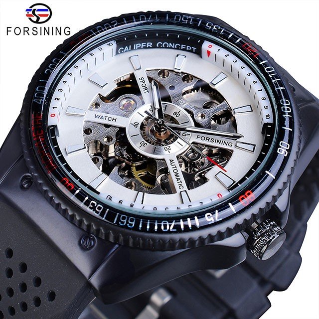 Forsining 回転ベゼデザインシリコーンバンド男性腕時計の高級自動黒 GMT963-3