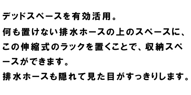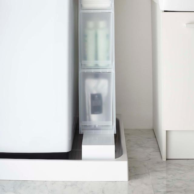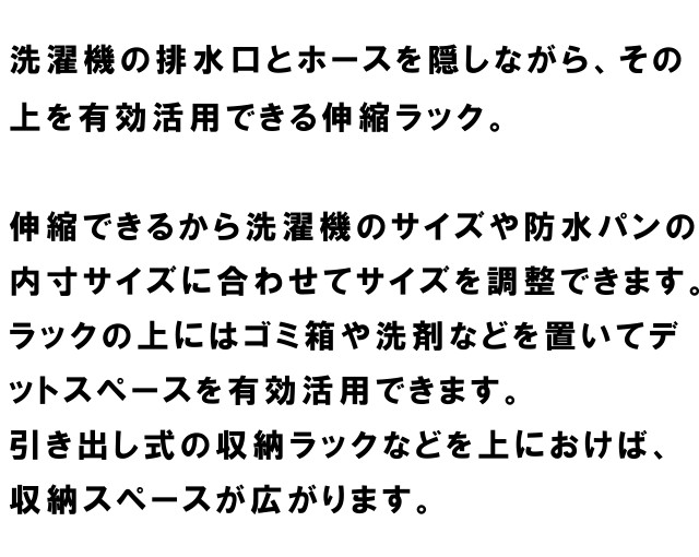 洗濯機の排水口とホースを隠してホコリもガード! その上を有効活用できるラックです。