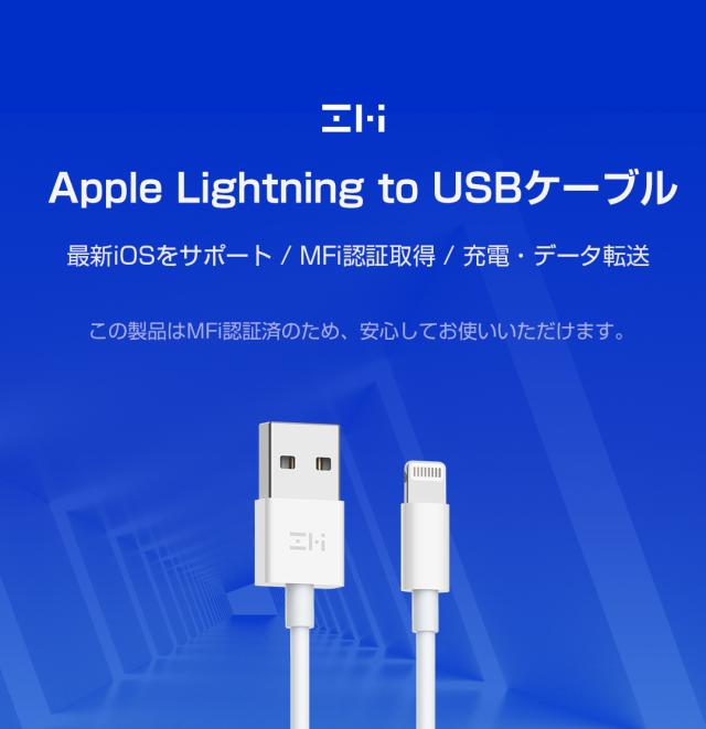 ZMI(ズーミー)ライトニングケーブル(型番:AL831)は、Appleの正規ライセンスを取得したMFi認証品です。iPhone・iPad・iPodの充電およびデータ転送に対応し、最新のiOS環境でも安心して使用できます。