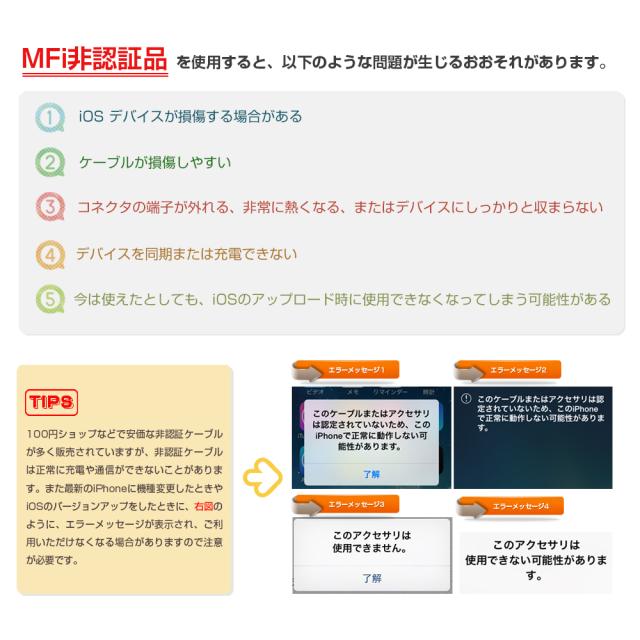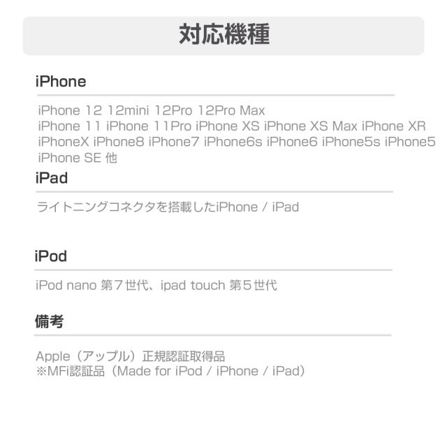 ・MFi認証品:iPhone/iPod/iPadの充電・データ転送ができます。Appleの正規ライセンス取得製品です。最新のiOSに対応しています。