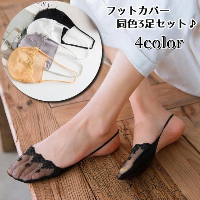 総レースがかわいいレディース用フットカバー同色3足セットです。