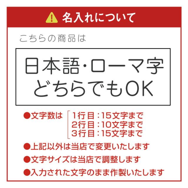 | 名入れ | 1行目…15文字まで 2行目…10文字まで 3行目…15文字まで |