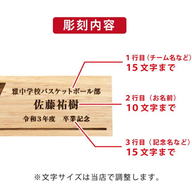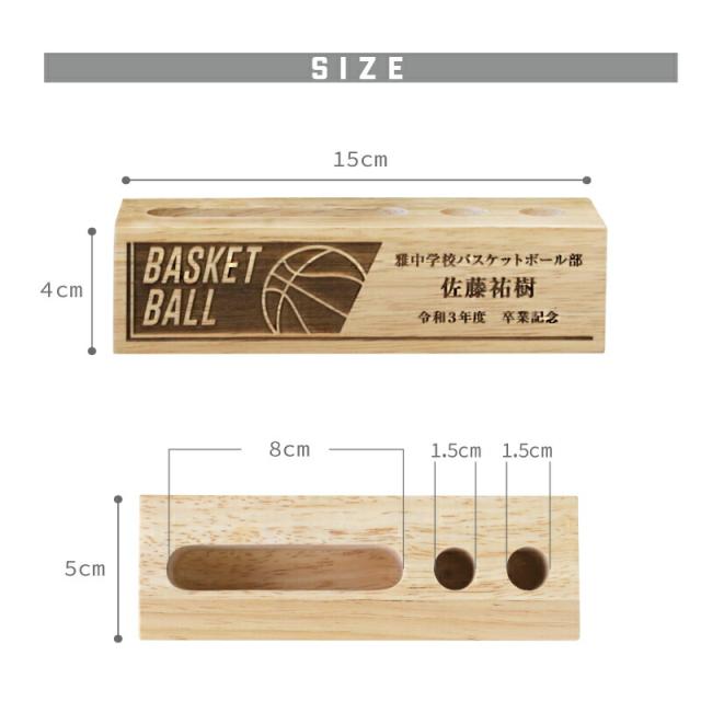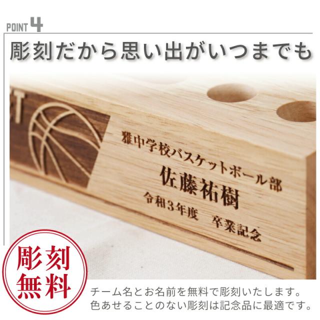 だから「卒業・卒団記念品」にぴったり。 3つのポイント♪ 1. 記憶に残る チーム名、名前、記念名の彫刻が入るから 絶対に忘れない記憶に残るプレゼントに。 スポーツデザインは、 サッカー 野球 バスケットボール バレーボール ラグビー テニス バドミントン 卓球 の8種類をご用意。 ボールをモチーフにした当店自慢のデザインです。 全力で頑張った経験は自信につながります。 目にするたび手にした時の感動がよみがえり、 背中を押してもらえることでしょう。 2. 実用性 思い出を飾る記念品としてだけでなく、 スマホやメモ帳、ペンを差し込める便利なマルチスタンドは 実用性にも優れています。 デスク回りをすっきりさせて、作業効率もUP。 そして環境にも配慮しゴムの木を採用。 ゴムの木とは文字通り天然ゴムの原料となる木。 ゴムの樹液採取後の木材をエコ利用しています。 木のぬくもりが感じられ、どんな空間にもマッチするので 置く場所を選びません。 3. クオリティ 当店自慢の彫刻名入れサービスは、 専門スタッフがひとつひとつ丁寧に施しております。 「画数の多い漢字も、字体が潰れる事が無かった」 「彫刻も写真のイメージ通りで大満足です!」 とお喜びの声が届いています。 消える事のない彫刻は、記念品の贈り物として大変喜ばれます。 思い出のつまった チーム名 と自分の 名前入り だから 末永く、大切にお使いいただけることでしょう。 「 どうして名前入りが喜ばれるの? 」 普段あまりにも身近にあるので、 自分の名前のことを深く考えることはありませんが 贈られた商品に自分の名前が刻まれていたらどうでしょう。 しかも特殊な技法で彫り込まれていたり 素敵なデザインとなってプリントされていたり… その瞬間、ただの“商品”ではなく “自分だけの大切なもの”に変化します。 そして贈ってくれた方の真心を感じ、 自然に笑顔がこぼれることでしょう。 名前はその人にとって唯一無二、かけがえのないものです。 私たちはそのお名前を大切に、贈る人、贈られる人、 両方の笑顔を想いながら商品を送り出します。 当店の名前彫刻はずっと消えずに残り、 永く愛着を持ってお使いいただけることでしょう。 《 あんしんラッピング 》 ラッピングは直送を除き同梱にてお届け。 ギフトラッピングの不織布袋は無料でお付けします。 さらに、選べるメッセージシールで 様々なシーンに対応いたします。 専用の箱も封はいたしませんので、 お渡しする前に中身を確認できます。 チームみんなに、各々の名前を入れて プレゼントしたい方にも安心です。 [ こんなシーンに選ばれています ] ・ 後輩 から 先輩 に送る 引退記念品 卒業記念品 として ・ 卒業式 に 保護者 から コーチ 担当 顧問 の先生へ ・ クラブチーム を 卒団 する 子供たち へ ・ 部活 の 優勝記念 に |