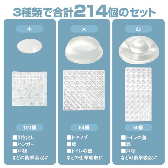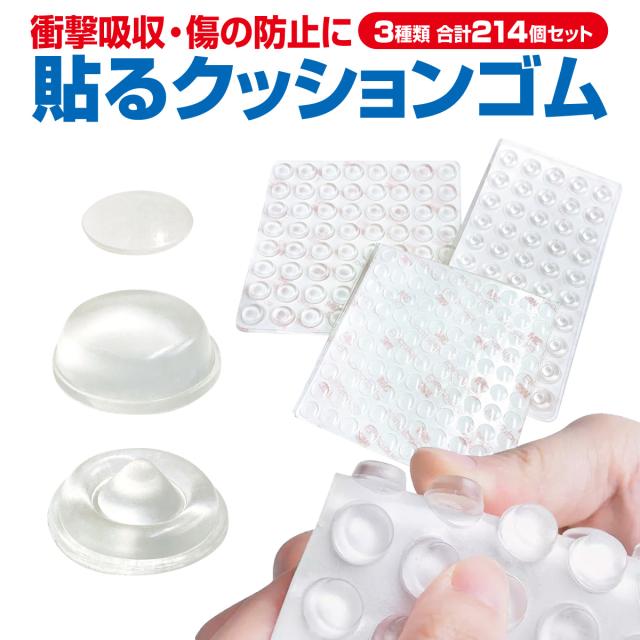 クッションゴム 透明 3種類セット 214個 ゴム足 ソフトクッション ゴムクッション 滑り止め 傷防止 粘着 シリコンゴム c-seal