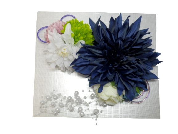 成人式 結婚式 卒業式 ブライダル 七五三 和装髪飾り 浴衣髪飾り 振袖 袴 髪飾り 頭飾り 濃紺地 芍薬 牡丹 No.2114