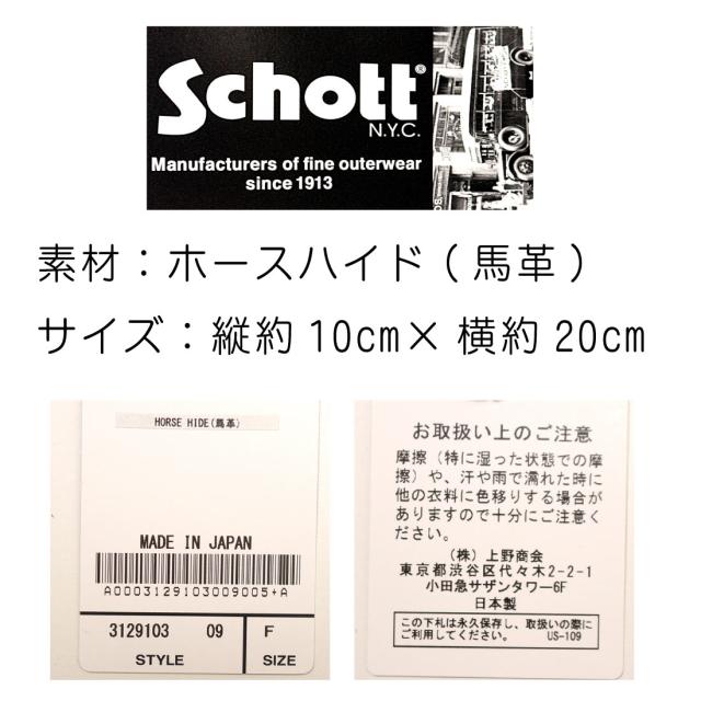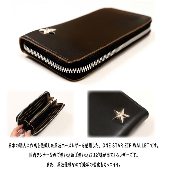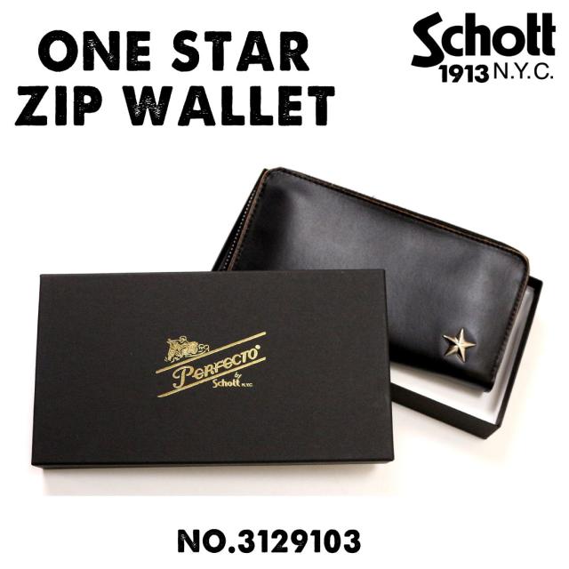Schott ショット 3129103 ONE STAR ZIP WALLET ワンスター ジップウォレット バイカー アメカジ メンズ 馬革 小物 グッズ 黒