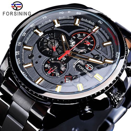 Forsining ビジネスメンズウォッチ マルチカラーマンクロックブルーステンレススチール GMT1137-7