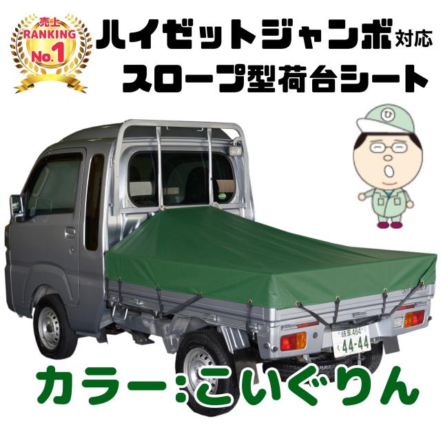 【こいぐりん】ダイハツ ハイゼット ジャンボ にピッタリ スロープ型 シート輪 ゴム 26本付 補修用キット付 日本製トラックシート 緑 ダークグリーン 濃緑 グリーン
