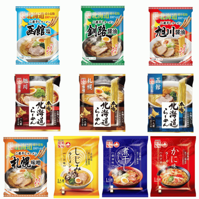 旭川・札幌・函館・煮干し・しじみ・かに味・二夜干し乾麺使用の釧路・函館・釧路・旭川(常温保存OK)<