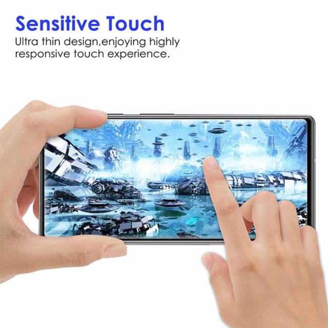 ガラスを液晶に置くだけで自然に吸着、 気泡が出来にくく誰でも簡単に貼り付ける事が可能です。