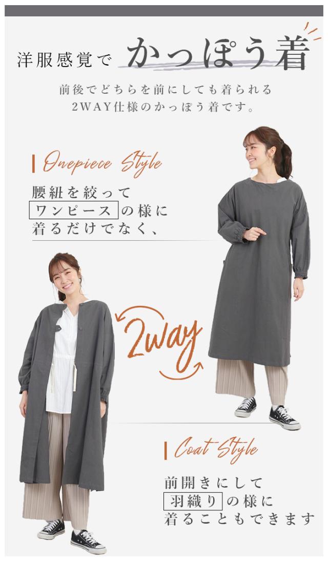 | 商品説明 | ・FABORI(ファボリ)より洋服感覚で着れちゃうロング丈の割烹着が登場♪ ・腰紐を絞ってワンピースの様に着るだけでなく、前開きにして羽織の様に着ることもできる2WAYタイプ。 ・割烹着の両サイドには大きくて便利なポケットを配置し、実用性も兼ね備えた仕様。 ・袖口にあしわられたギャザーデザインと綿100%のナチュラルな風合いの素材感が優しい印象に。 |
