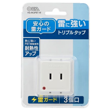 オーム電機 雷に強いトリプルタップ 3個口 00-6966 HS-AK3PBT-W