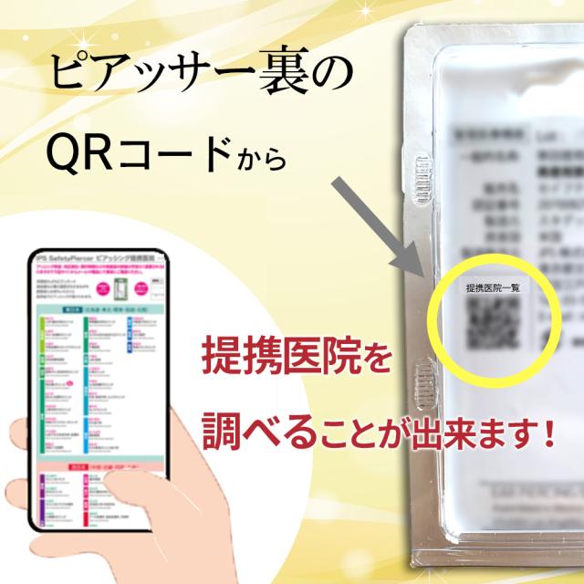 初めての方も安心、全国の提携医院でピアッシング施術を受けることが出来ます。パッケージのQRコードを読み込むと全国提携医院が表示されます♪