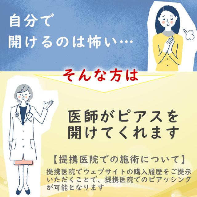初めての方も安心、全国の提携医院でピアッシング施術を受けることが出来ます。パッケージのQRコードを読み込むと全国提携医院が表示されます♪
