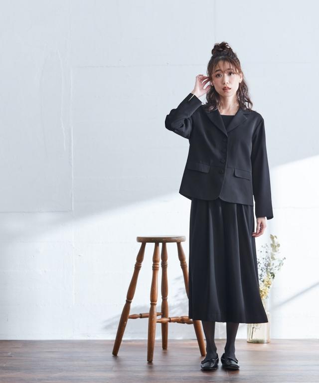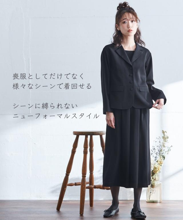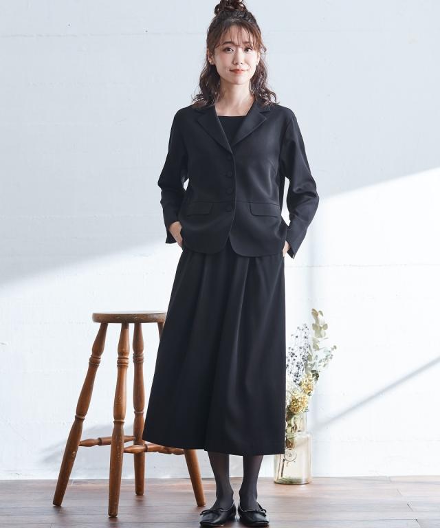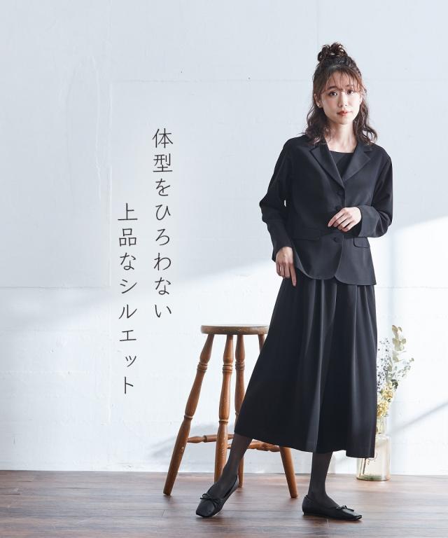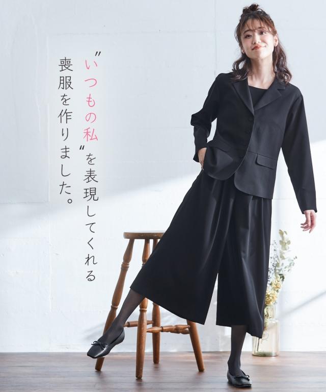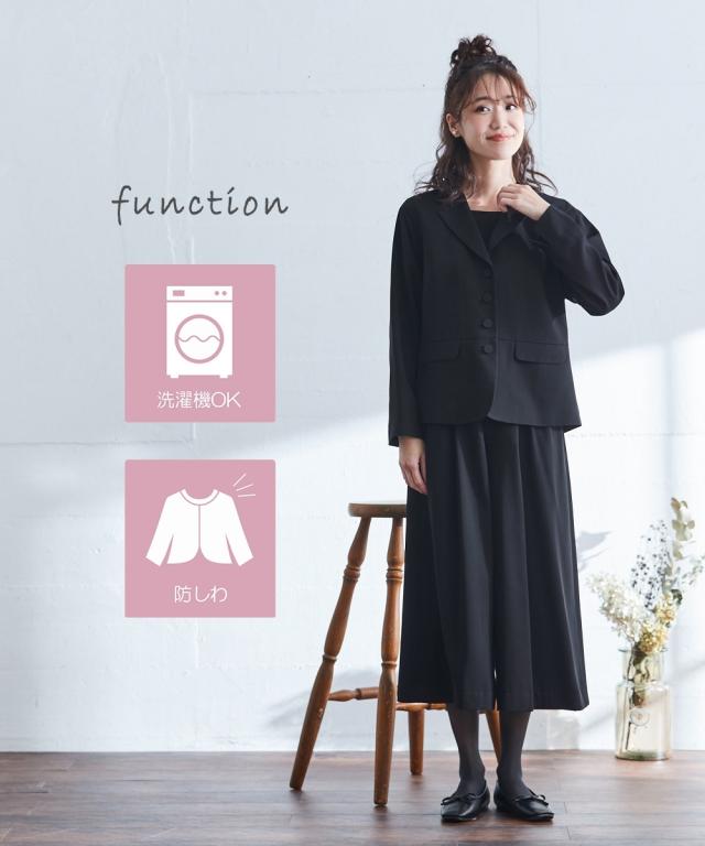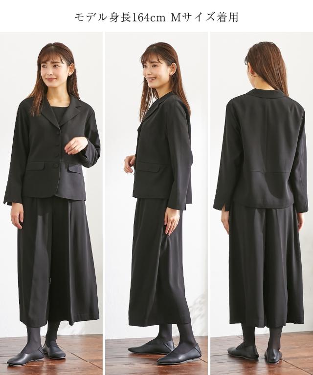 喪服 礼服 スーツ レディース 洗える 防しわ 胸当て付き ナチュラル テーラード ジャケット +ワイド パンツ 黒 S/M/L ニッセン nissen