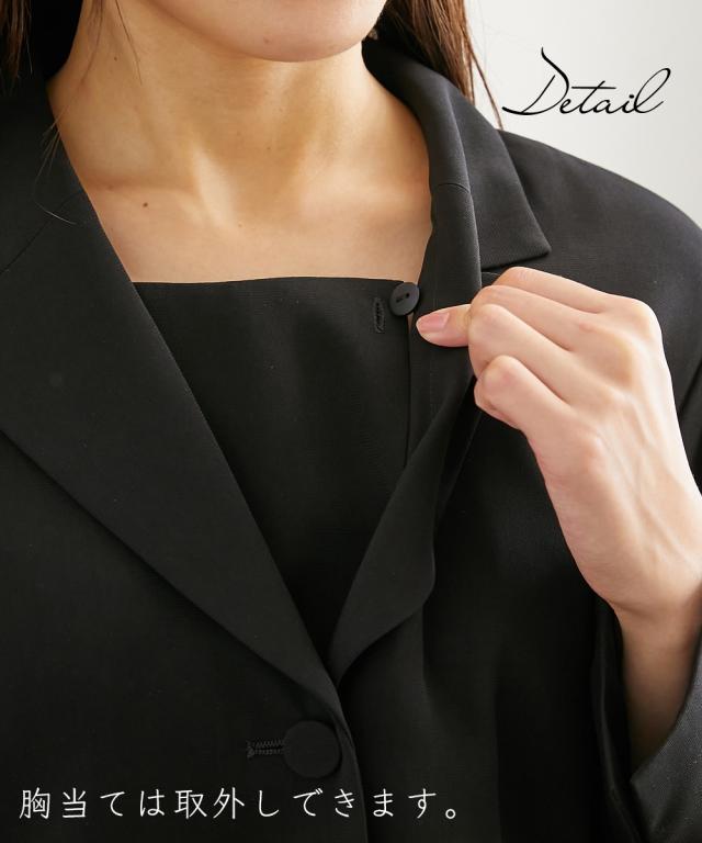 【喪服・礼服】<Neina>洗える防しわ胸当て付きナチュラルパンツスーツ(テーラードジャケット+ワイドパンツ)<大きいサイズ有>