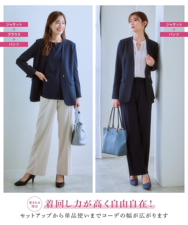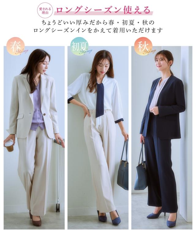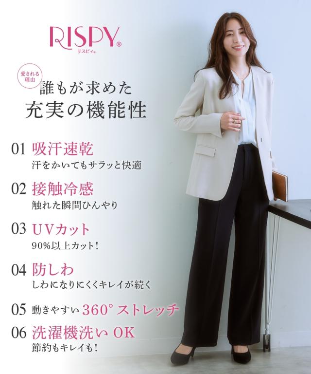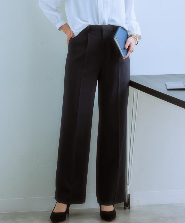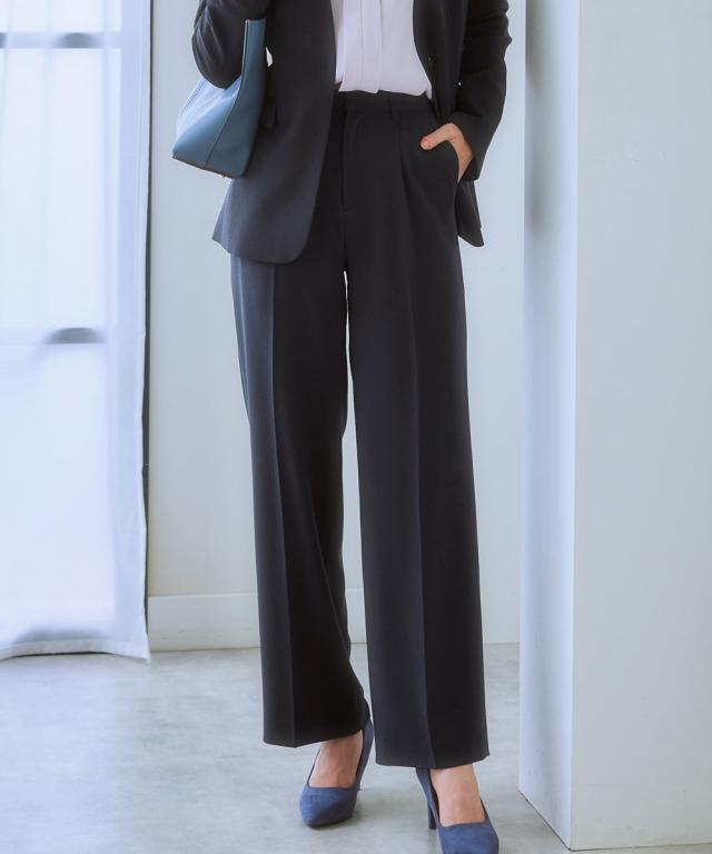【レディーススーツ】セットアップ対応ワイドストレートパンツ(上下別売・すごく伸びる多機能変り織リスピィシリーズ)