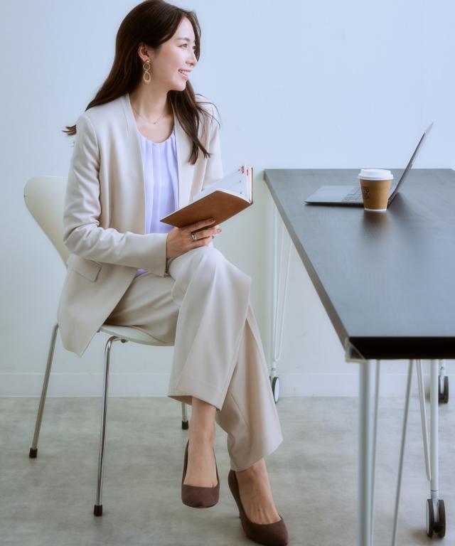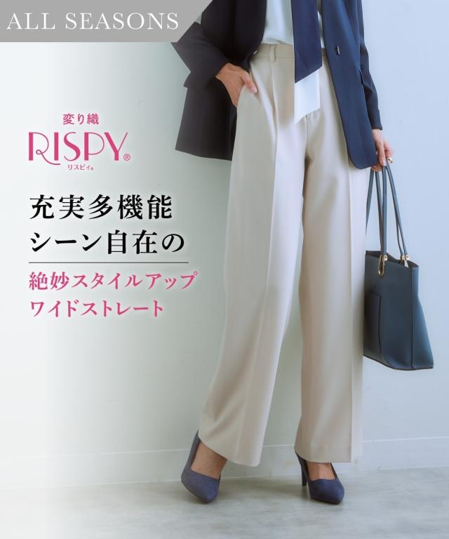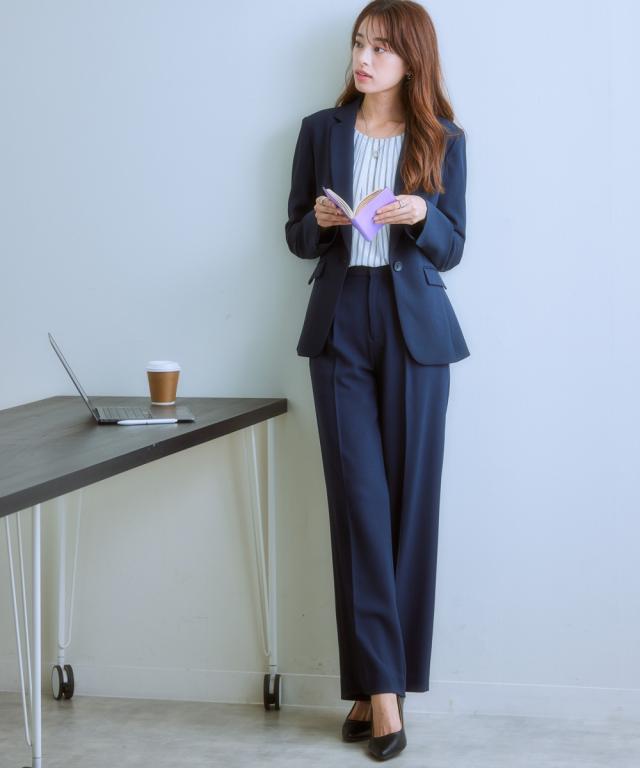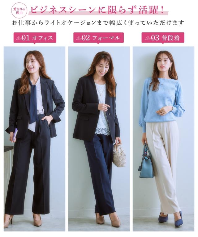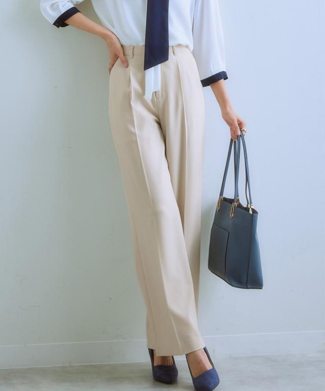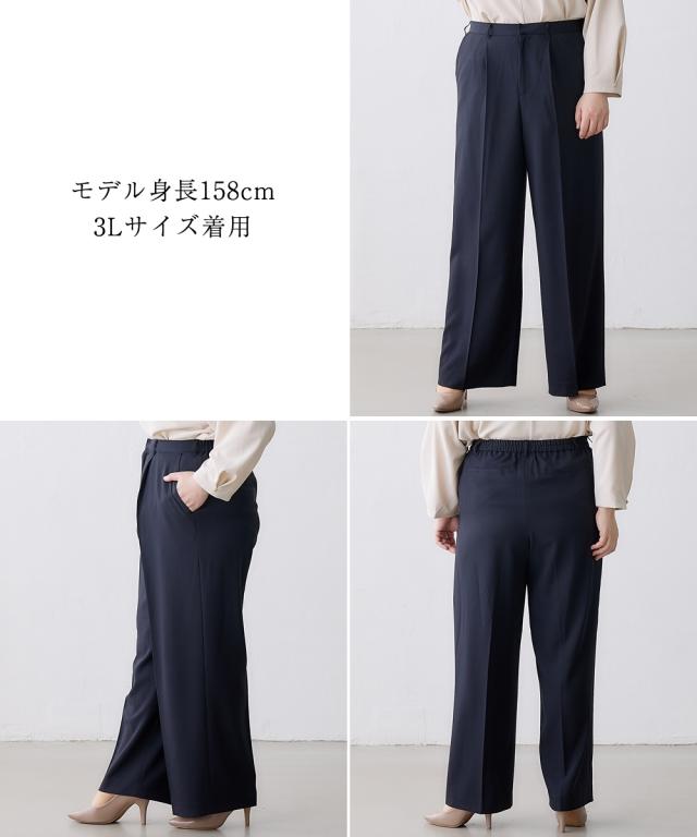 【レディーススーツ】セットアップ対応ワイドストレートパンツ(上下別売・すごく伸びる多機能変り織リスピィシリーズ)