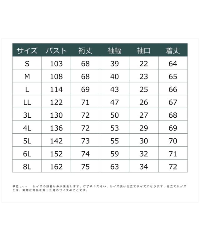品質=[表地]ポリエステル95%・ポリウレタン5%(織物 ストレッチ変り織) [裏地]無 後ろ衿ぐりボタン開き 両裾スリット※LL〜8Lサイズ胸ダーツあり 原産国:中国製 洗濯表示:洗濯機OK ネット使用