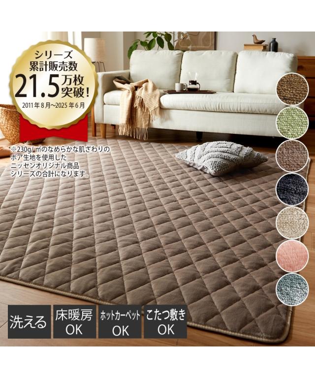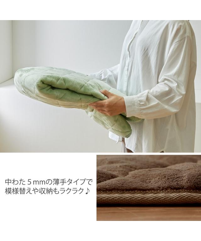 ラグ 洗える キルト おしゃれ かわいい 北欧 カーペット ラグマット ラグカーペット ホットカーペット対応 滑りにくい 洗濯機OK ふんわり グリーン ベージュ ピンク ブラウン 約90×185cm 厚さ5mm ニッセン nissen